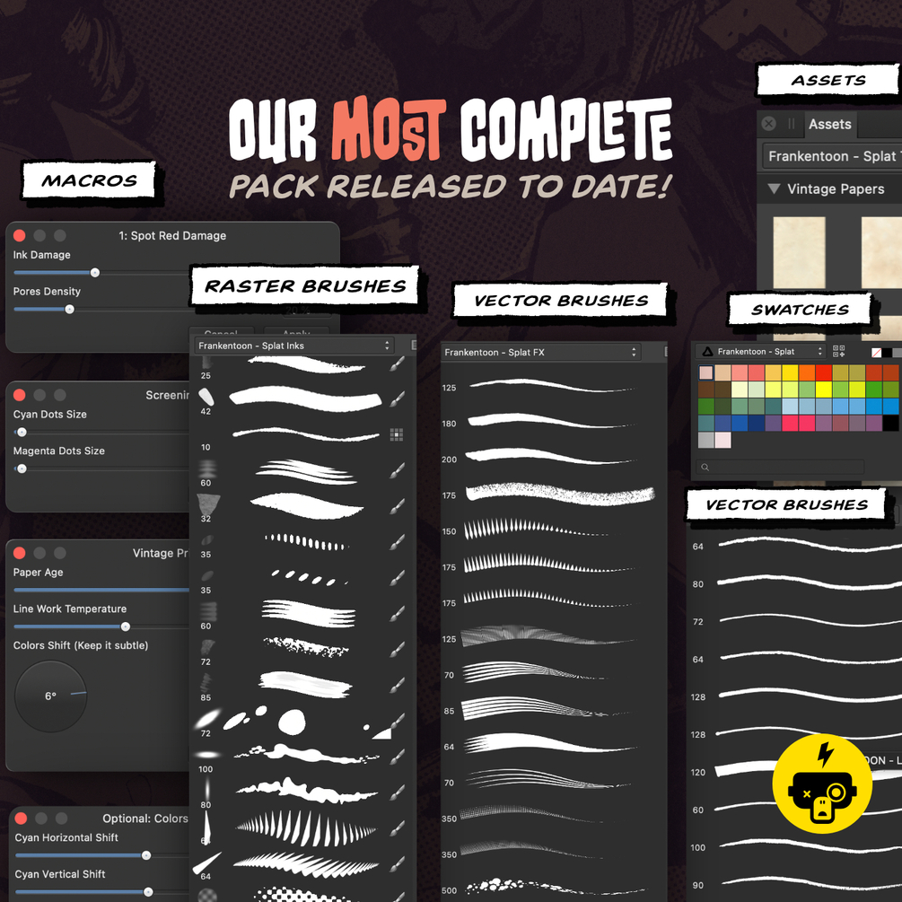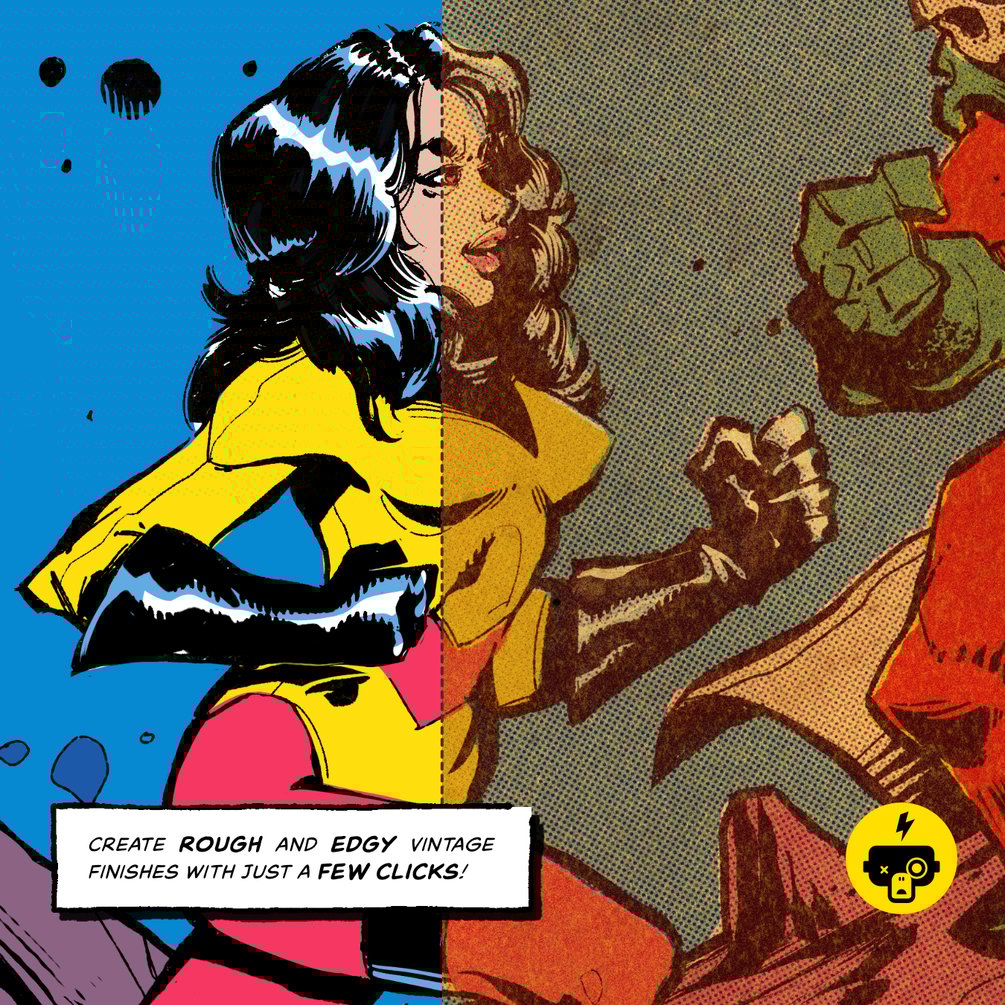 A complete kit of retro-flavored comic creation tools and unique effects for Affinity Designer and Affinity Photo.