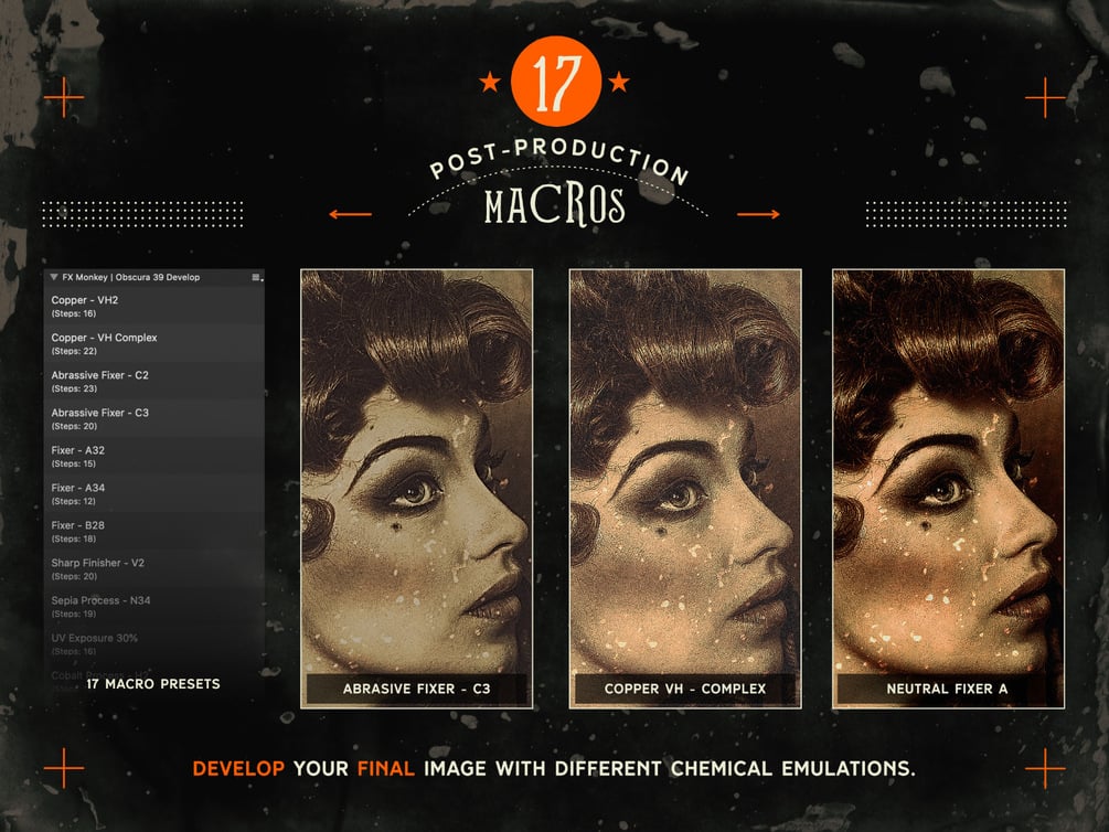 Obscura No.39 gives you the power of turning Affinity Photo into a vintage post-production studio.