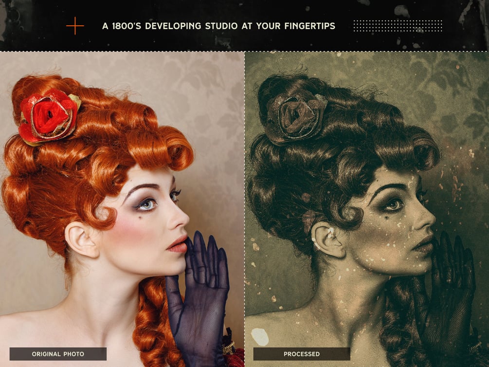 Inspired by 19th-century developing techniques, this practical kit of Tone Maps, Overlays and Macros, will provide you with hours of fun, mangling your pristine high-quality photos and turning them into beautiful pieces of damaged vintage art.