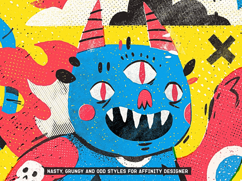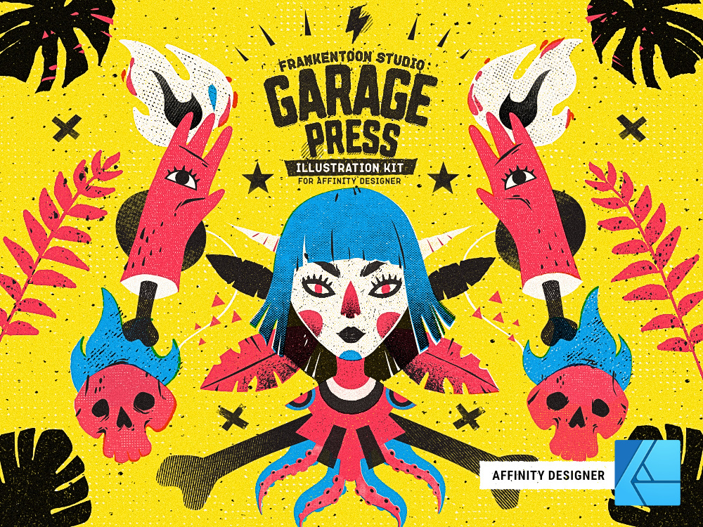 Garage Press is an easy-to-use set of tools for creating hand-printed effects in Affinity Designer, fully integrated into the app through its native Styles Panel.