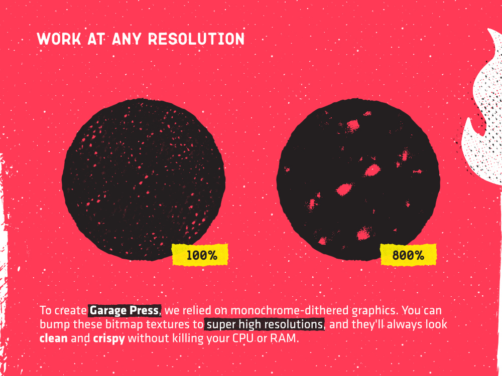 Transform your flat vector artworks into beautiful organic pieces of art in minutes. Garage Press takes inspiration from linocut, block, and screen printing methods. Spend hours of fun with your own digital printing workshop!