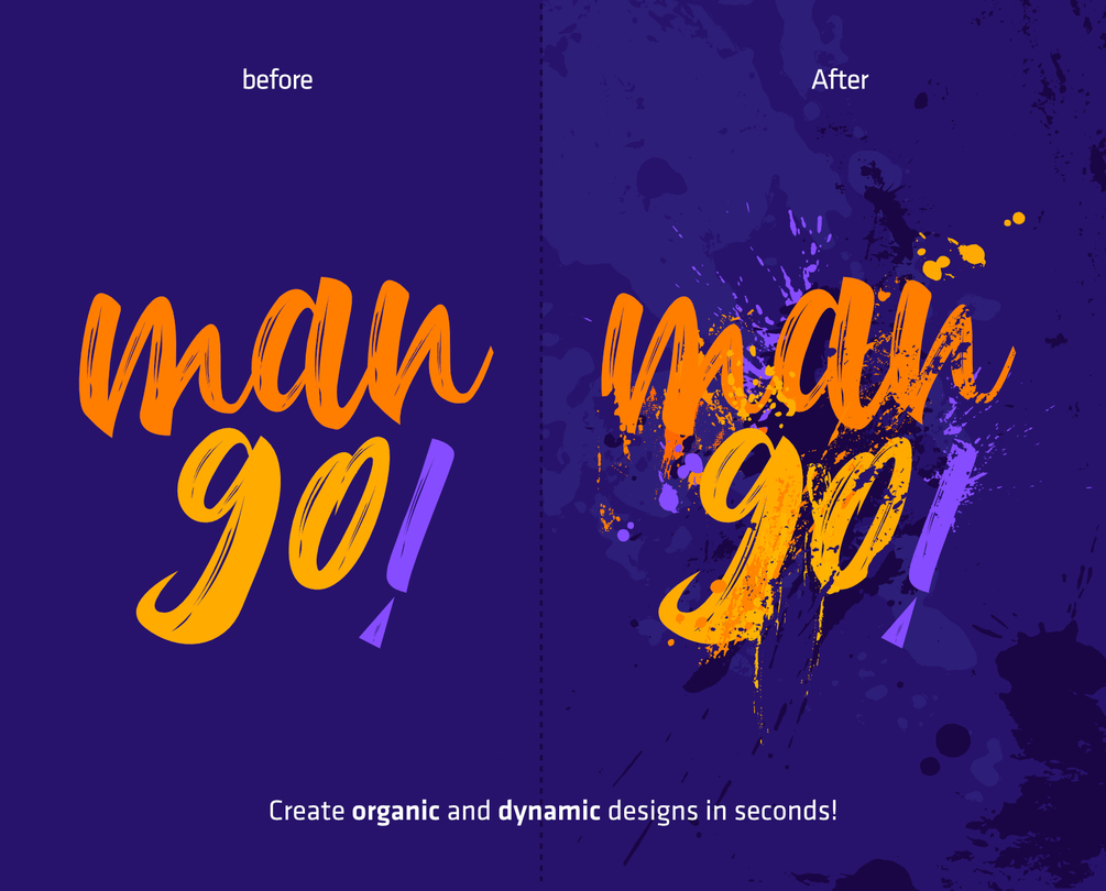 Drag, drop, recolor, resize and repeat! Texture Pack Vol.3 for Affinity Designer allows you to non-destructively add spatters, drips and stains in fully-scalable vector format to your illustrations and designs. This Affinity Designer exclusive can be used to: